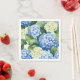 Party paper napkin is shown in a lovely blue and white hydrangeas floral print.