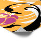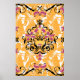 The artwork is a striking piece of floral design featuring an array of black and purple flowers set against a vibrant orange background. These flowers are illustrated in a range of sizes, with the larger ones featuring deep black petals, while the smaller ones showcase rich shades of purple! This artwork would make a bold and eye-catching addition to any décor style, infusing any space with energy and life!