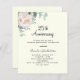 An ivory coloured background. Decorated with a white floral, peony flower and green watercolored eucalyptus greenery. Personalise and add your names and the details.