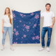 Floral Japanese Blue And Pink Sakura Petal Pattern Fleece Blanket