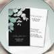 This unique jewellery business card is decorated with watercolor eucalyptus leaves on a black background with stylish script typography.