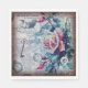 Newspaper print ephemera with vintage cars, sleigh and clock or pocket watch, vintage skeleton key, pink rose, and white diamond. Unique design for decoupaging small projects.