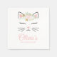 floral kitten birthday party napkins with cute kitty face and pink text