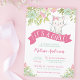 This girl kitten baby shower invitation features sweet flowers and a cute kitten illustration. Beautiful soft pinks, greens and blues add a lovely vintage feel.