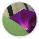The image on this custom ceramic knob is a pink-purple Morning Glory wildflower under a leaf, while other leaves cast shadows on a wooden fence.