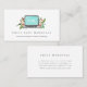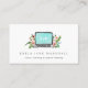 Beautiful design for teachers and educators specializing in virtual tutoring, remote learning, or online instruction features a watercolor laptop illustration flanked by bouquets of blush pink peony flowers. Customize the front with two lines of text and add your initials or monogram to the aqua laptop screen, then add your contact information to the reverse side.