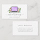 Beautiful design for teachers and educators specialising in virtual tutoring, remote learning, or online instruction features a watercolor laptop illustration flanked by bouquets of blush pink peony flowers. Customise the front with two lines of text in handwritten script and classic serif lettering, and add your initials or monogram to the purple laptop screen. Add your contact information to the reverse side.