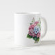 This jumbo size mug is shown in white with a pretty floral hydrangeas watercolor print.