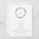Floral Laurel Wreath Navy Blue Rehearsal Dinner Invitation