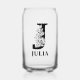 Floral Letter J Monogram and Personalised Name Can Glass