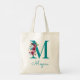 Floral Letter M Script Monogram Teal Pink Tote Bag