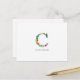 Flat note card featuring a floral monogram initial, letter 'C' with name underneath.