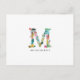 Floral Letter Monogram Initial - M - Flat Card