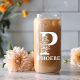 Floral Letter P Monogram Personalised Name White Can Glass
