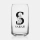 Floral Letter S Monogram and Personalised Name Can Glass