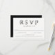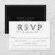 Modern and trendy black and white floral RSVP letters with solid black colour backing and white frame accent, wedding RSVP cards with food allergy/dietary restriction note for guests. Elegant letters feature delicate black and white line art flowers and foliage.