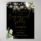 This elegant gold and black botanical greenery floral string lights engagement party welcome sign can be personalised with your information in chic typography. Designed by Thisisnotme©