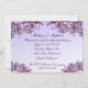 Lilacs are the theme of this wedding rehearsal dinner invitation. The front features pink and mauve lilac sprays on a purple background. The back has more blossoms. Customise the text for your special occasion.