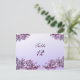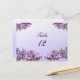 Lovely lilacs are the theme of this elegant wedding table number card. The front has a border of pink and mauve lilac sprays on a gradient pale purple background. The back has one simple spray of blossoms on the same exquisite pale background. All text can be customised for your special occasion.