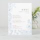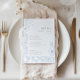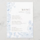 Modern minimalist floral line art frame French blue and dark tan wedding menu.