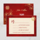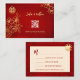 Gold line art flowers and a gold double happiness symbol on a shimmering red background. RSVP Chinese Wedding Card. At the backside is a scannable qr code for your wedding website.
