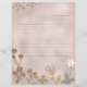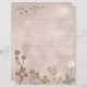 Floral lined journal sheet, junkjournal paper, scrapbook paper in muted earth colours, vintage colours, is a beautiful letter paper with painted wild flowers.
