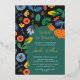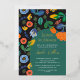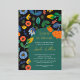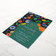 Modern real foil love in bloom bridal shower design featuring big bold colourful flowers in orange yellow and blue with a modern arch showcasing your party info.