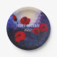 Beautiful red poppy flowers painting. Custom name birthday paper plates.