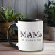 This is a simple yet beautiful mug to celebrate being or becoming a mother. The design features the word "MAMA" in a floral text, with customisable text below. Personalise this mug by adding the name or names of the children, to make a great Mother's Day, birthday or Christmas gift.