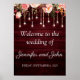 Floral Maroon Wooden Rustic Wedding Welcome Poster