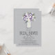Elegant Mason Jar and Flowers Bridal Shower / Wedding Shower Invitation. A Mason Jar filled with flowers in colours of Light and Dark Purples with White Daisies wildflowers. A Silver Grey Coloured Background is set. If the colour scheme is not what you wanted please let me know and I'll recreate that for you but please contact me before placing an order. Email paula@labellarue.com Happy Wedding Planning! Make sure to pick your favourite cardstock to have it printed on.