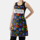 Fun apron featuring a Mexican pattern of colourful flowers, birds and ornaments set against a black background and two lines of custom text. Add a person's name, your Abuela's name, restaurant name, cafe or shop name or delete the text and rectangle and just use the pattern. Perfect for budding chefs, birthday parties, special events and fiestas, caterers, host/hostess gifts or anyone who loves Mexican cuisine.