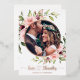 This elegant wedding thank you postcard has a photo in the front with pink roses, Love and Thanks text overlay and the couple's names. The back side has your own personal message, and another photo.