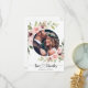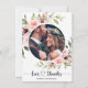 This elegant wedding thank you postcard has a photo in the front with pink roses, Love and Thanks text overlay and the couple's names.