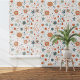 Modern floral wildflower pattern in burnt orange and teal blue on a light background. Original art by Nic Squirrell.