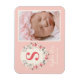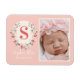 Floral Monogram Baby Girl Announcement Blush Pink Magnet