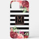 Floral Monogram Black White Striped Rose Gold Case-Mate iPhone Case