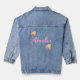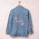 Cute woman's or teen's denim jacket personalised with name in pink and wildflowers.