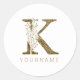 Floral Monogram K Elegant Gold Foliage Classic Round Sticker
