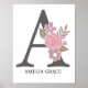 Personalised Floral Monogram Letter A Name Nursery wall art print perfect to decorate your little one's nursery. Add their name and even personalise it further by changing the colour of letter and background. Order yours today!
