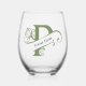 Floral Monogram Letter P Add Name Change Colour Stemless Wine Glass