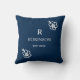 Floral Monogram Navy And White Custom Initial Cushion