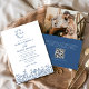 Floral Monogram Photo QR Code Navy Blue Wedding Invitation