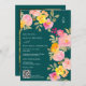 Celebrate your wedding with our charming Floral Wedding Qr code and photo Invitation. This beautifully designed invitation features a delightful array of hand-painted flowers in vibrant shades of pink, orange, and yellow, accented by lush green foliage. The elegant floral border frames the text perfectly, creating a harmonious and romantic look. A modern monogram in the top corner adds a personal touch, and a modern QR code at the bottom right ensures convenient RSVP options on an editable dark deep teal background. Additionally, there is a customisable photo template at the back, allowing you to add a cherished photo of the couple, making this invitation not only beautiful but also personal and memorable.