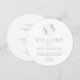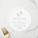 This elegant round wedding menu features a soft floral monogram and refined minimalist typography, creating a timeless and romantic look for your reception tables. Designed in warm neutral tones with a clean modern layout, this double-sided menu highlights your appetizer, entrée, and dessert selections in a beautifully balanced presentation. Perfect for classic, garden, modern, and elegant weddings. Personalize the initials, menu items, and date to match your special day.