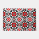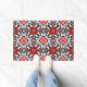 Floral Moroccan Tile, Deep Red, Black and White Doormat