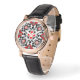 Floral Moroccan Tile, Deep Red, Black and White Watch