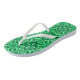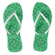 Flip flops in an Art Deco Moroccan tile pattern based on stylised flowers and leaves - shades of jade green, from light mint to dark emerald green, accented with white