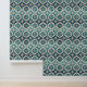 Floral Moroccan Tile Pattern#1 Teal White ID1078 Wallpaper