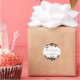 The sticker is made on wonderful paper and had no problem sticking to the bag that I purchased to put it on. I wanted to find a design that would be cute for the bride and groom and this one fit the bill as it has cute "bees" buzzing around and the wedding was taking place in a town called "Bee Cave". The packaging was great and protected the stickers. The website is easy to navigate and there are so many color choices. I had no problem finding a color that the bride was using on everything else selected. The design was adorable and there were many to choose from. You can make the figure as larger or smaller and you can place the photo and writting whereever you want to in the sticker. The printing is fabulous..better than expected.